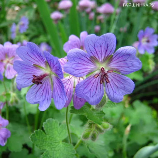 Герань Филипп Ваппель – эффектный почвопокровный неприхотливый многолетник. Высота 45 см. Цветки также обладают эффектным внешним видом. Они голубые, с пятью лепестками. Листья осенью принимает красноватый оттенок. Цветет в начале лета.