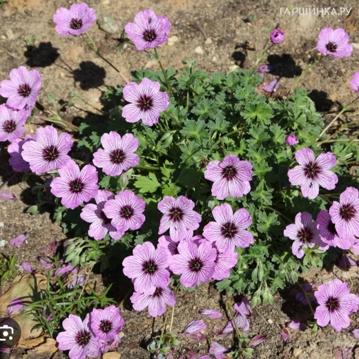 Герань садовая Лоуренс Флэтмен – эффектный почвопокровный неприхотливый многолетник. Высота 10 - 15 см. Цветки диаметром 2,5 см лилово- розовые с темно- бордовым центром и ярко выраженными прожилками. Период цветения июнь- июль. Больше других видов гераней страдает от низких температур и высокой влажности почвы ранней весной и поздней осенью.
