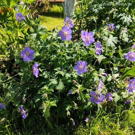 Герань садовая Розанна – эффектный почвопокровный неприхотливый многолетник. Высота цветоноса не более 50 см. Период цветения: июнь-октябрь. Цветки крупные, фиолетово - голубые, с более светлым центром. Листья сильно разрезные, имеют приятный аромат. Растение неприхотливое. Хорошо растет и цветет на солнечных участках или в легкой полутени.