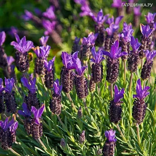 Лаванда Blue Star - Вечнозеленый многолетний полукустарник без центрального стебля со множеством побегов. Высота растения 60 см. Цветет с мая до конца июля, очень необычными пурпурно-сиреневыми цветами.