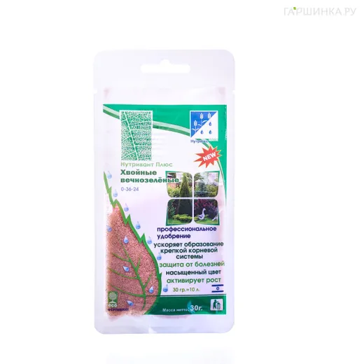 Нутривант плюс Хвойные вечнозеленые 0-36-24. Безазотное фосфорно-калийное удобрение с микроэлементами и фертивантом. Предназначен для корневой подкормки.
