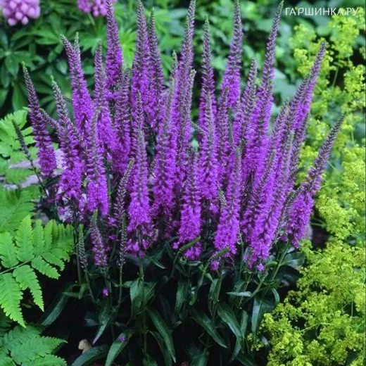 Вероника Эвелине - многолетнее травянистое растение. Высота до 60 см. с крепкими прямыми стеблями и продолговатыми, практически голыми листьями. Кисти верхушечные (до 25 см длиной), одиночные или чаще с несколькими боковыми кистями. Цветет летом с конца июня по сентябрь. Листья блестящие, темно- зеленые. Цветки пурпурно- розовые.